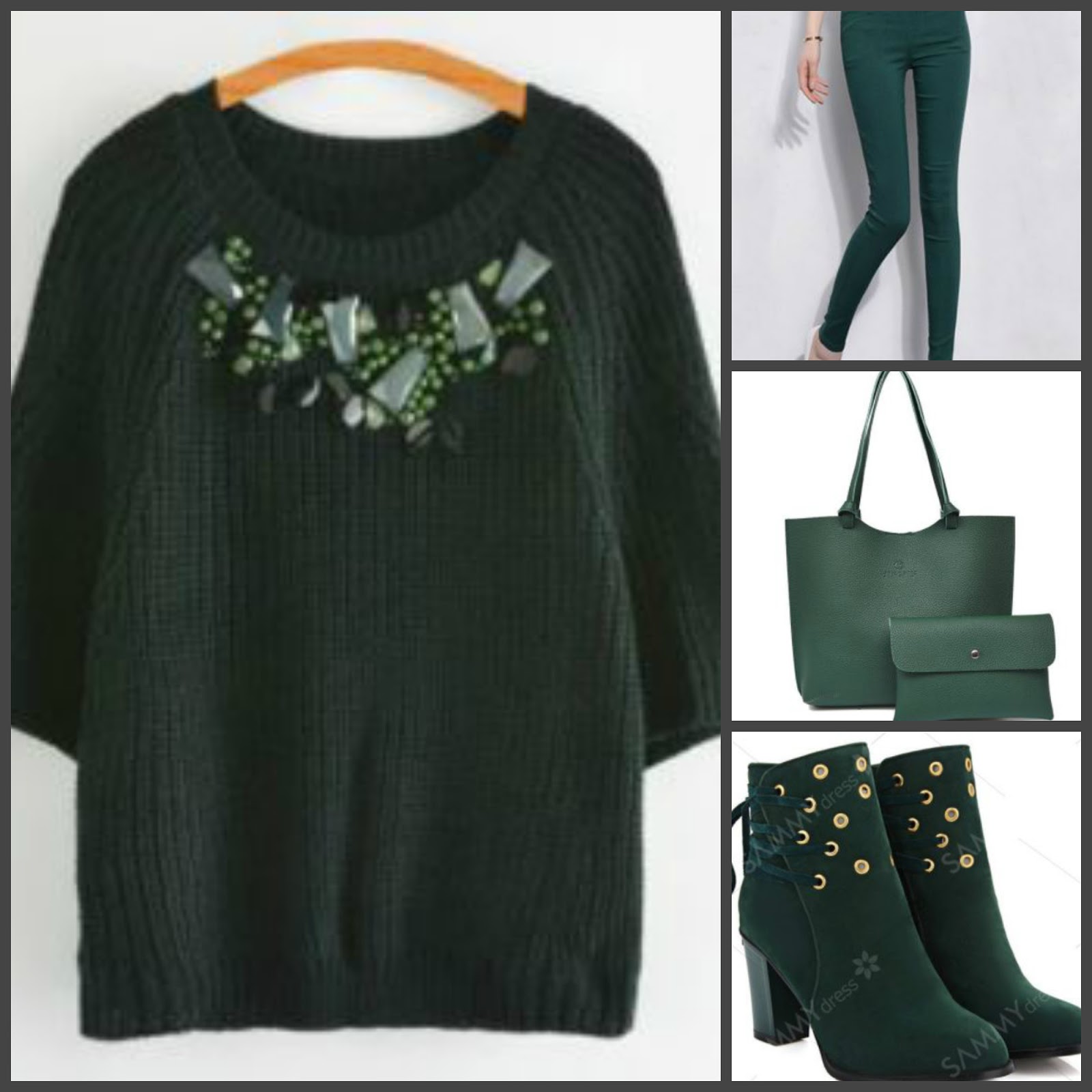 Привет, друзья и гости блога. Дело близится к осени, поэтому пора задуматься о новой одежде. На сайте Sammydress я нашла красивый зелёный свитер и подумала, что он станет идеальной обновки в моем гардеробе. К свитеру я подобрала обувь и брюки с сумкой.